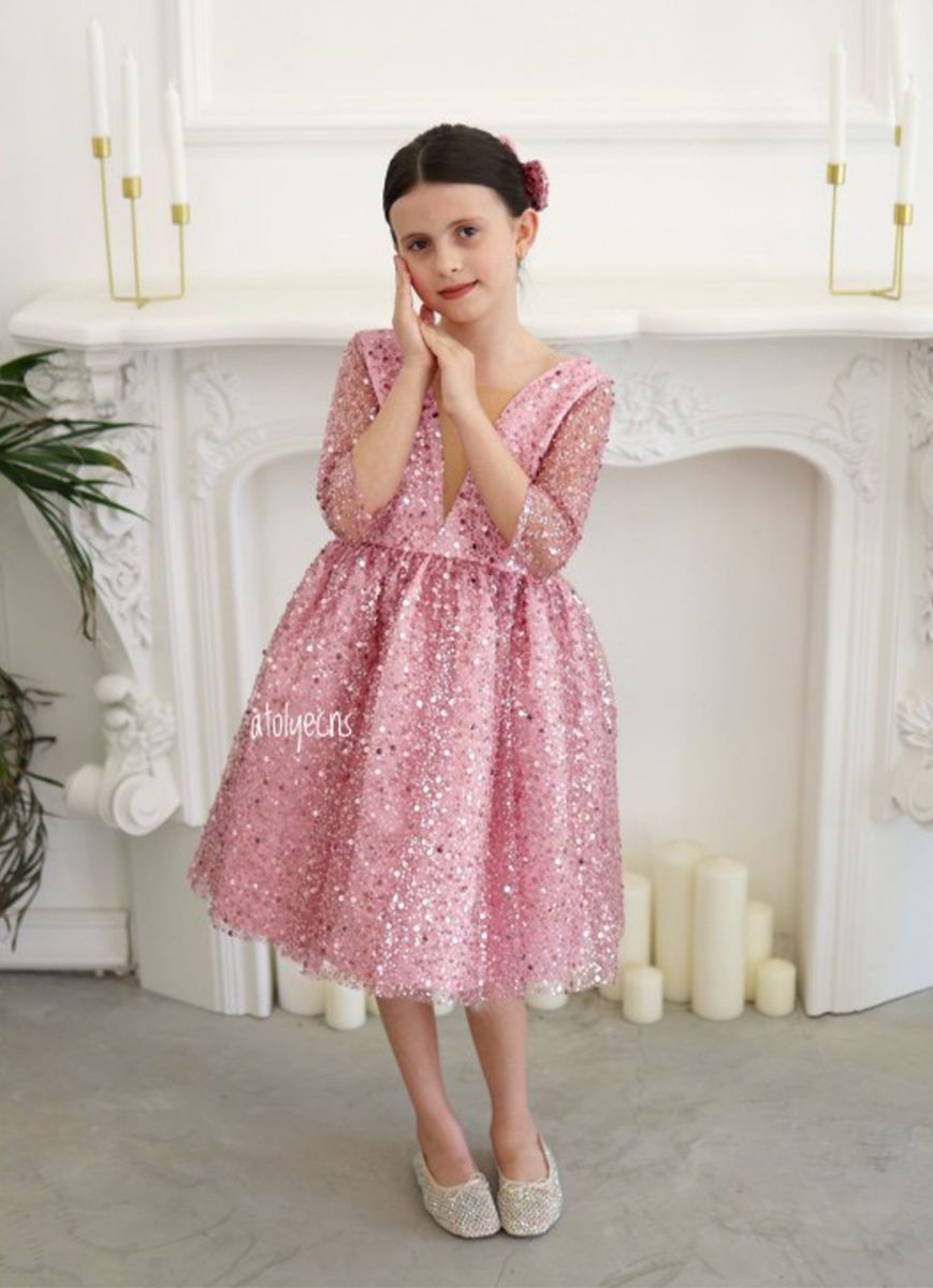 PEMBE BONCUKLU KUMAŞ TASARIM ELBİSE